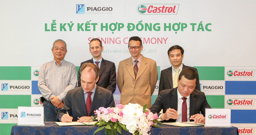 Hãng dầu nhớt Castrol và Tập đoàn Piaggio đã kí kết thỏa thuận hợp tác dài hạn về cung cấp dầu nhớt cho các sản phẩm xe máy của các thương hiệu Vespa, Aprilia, Moto Guzzi, Derbi và Gilera của tập đoàn Piaggio.
